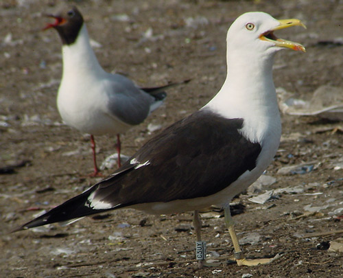 (2 images) Larus fuscus fuscus 3cy C3UY 3cy, July 09-17 2003, Tampere, Finland (61.33N 24.59E).