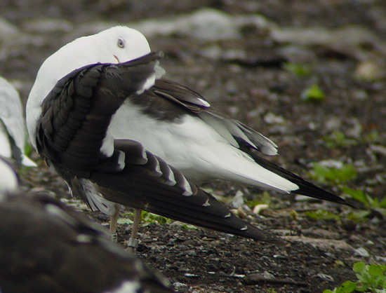 secondaries. Most rectrices appear all white. Note the dark markings on the bill
