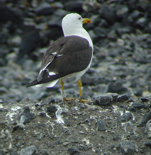 Larus fuscus fuscus 9cy C134, July 11 2003, Tampere, Finland (61.33N 24.59E).