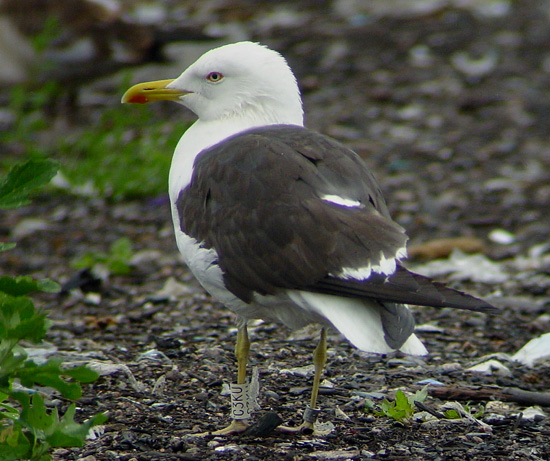 Larus fuscus fuscus 6+cy C3KU, July 09-11 2003, Tampere, Finland (61.33N 24.59).