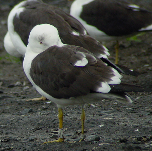 Larus fuscus fuscus 7cy C5S1, July 11 2003, Tampere, Finland (61.33N 24.59).