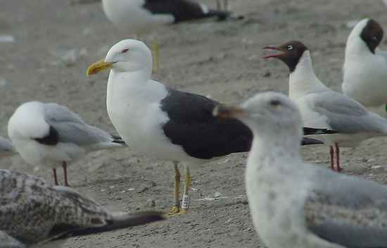 (3 images) Larus fuscus fuscus C69E, August 06-09 2002 & July 16 2003, Tampere, Finland (61.33N 24.59).