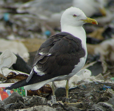 Larus fuscus fuscus 5cy C6KV, July 12-15 2003, Tampere, Finland (61.33N 24.59).