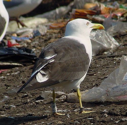 Larus fuscus fuscus 6cy CJN1, July 15 2003, Tampere, Finland (61.33N 24.59).