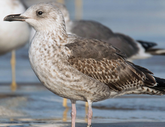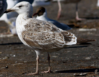 Plate 33: Type IV - Heuglin's Gull heuglini 2CY, February 12 2011, Ashdod, Israel (Amir Ben Dov). By February the juvenile wing-coverts still look remarkable good. All scapulars were moulted in this bird, as were also many inner wing-coverts and upper tertials. Splendid condition of new feathers indicate very recent replacement. |