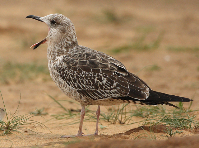 Plate 31: Type IV - Heuglin's Gull heuglini 1CY, December 03 2009, N Oman (Hans Larsson). By early December the first moult gaps in the small scapulars appear in the neat juvenile plumage. This indicates the commencement of post-juvenile moult. Note this late hatching bird from the tundra has a neat plumage lacking obvious wear or bleaching (even in Oman with its desert climate). |