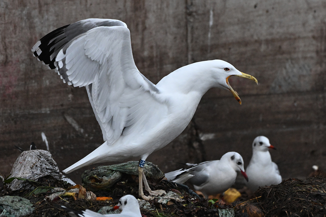 below: Caspian Gull cachinnans F|Y 4CY, December 23 2024, Almere - De Vaart, the Netherlands. Picture: Thijs Horst.