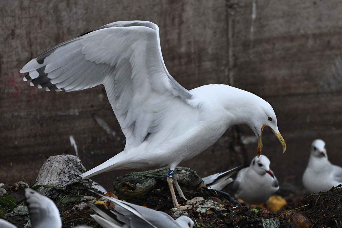 below: Caspian Gull cachinnans F|Y 4CY, February 15 2024, Almere, the Netherlands. Picture: Thijs Horst.