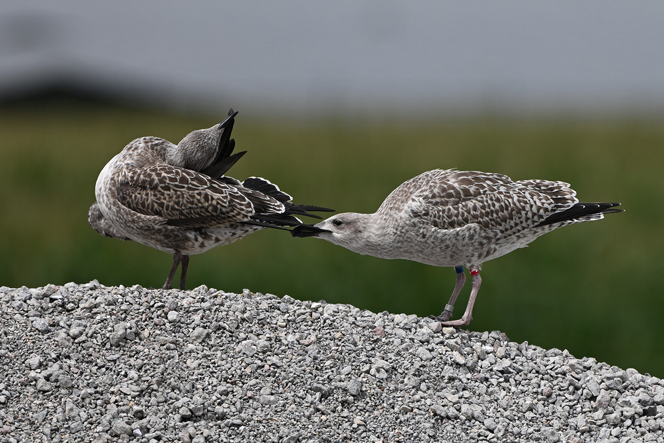 below: Herring Gull argenteus B / J7 1CY, August 04 2025, Almere - De Vaart, the Netherlands. Picture: Thijs Horst.