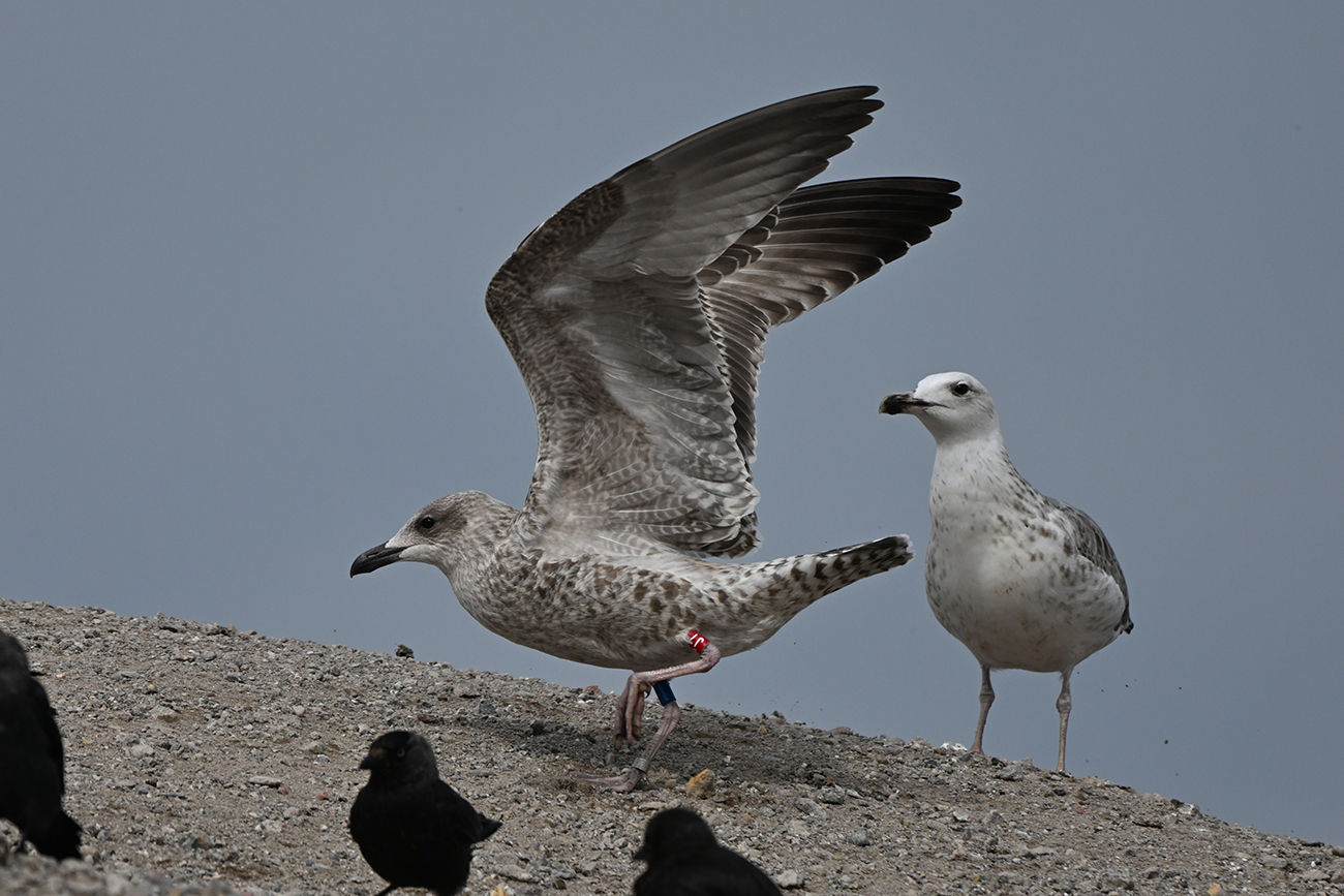 below: Herring Gull argenteus B / J7 1CY, October 08 2025, IJmuiden, the Netherlands. Picture: Thijs Horst.