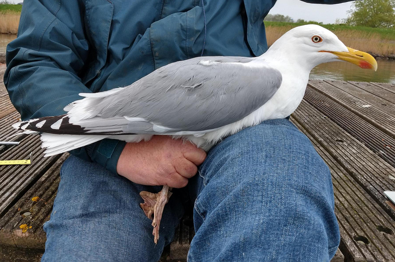 Herring Gull argenteus B / JA adult, 2025, Lelystad & Almere, the Netherlands. Picture: Thijs Horst & Mars Muusse.