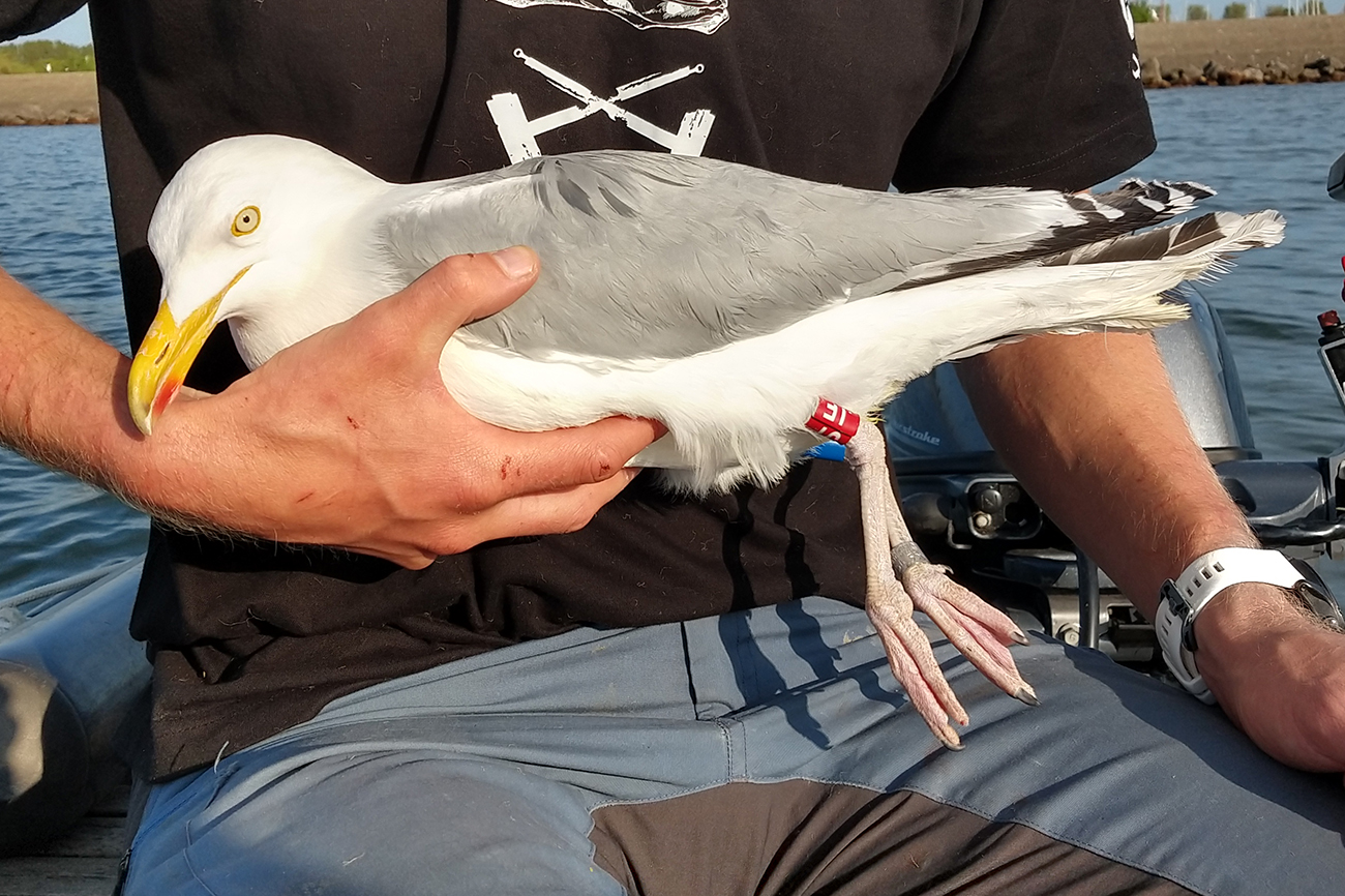 below: Herring Gull argenteus B / JF adult, April 28 2025, colony Lelystad, the Netherlands. Picture: Thijs Horst & Mars Muusse.
