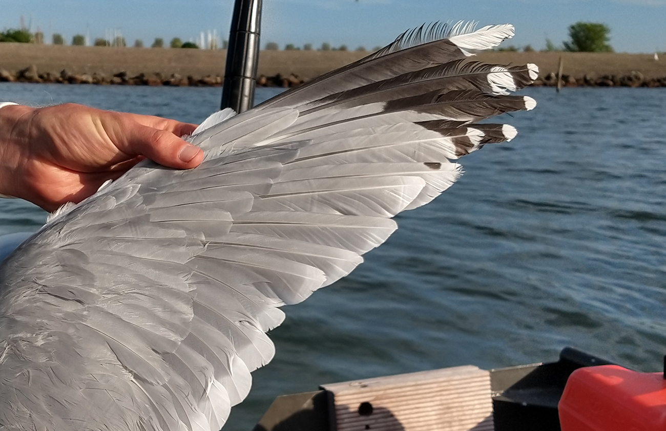 below: Herring Gull argenteus B / JF adult, June 24 2025, Almere - De Vaart, the Netherlands. Picture: Thijs Horst.