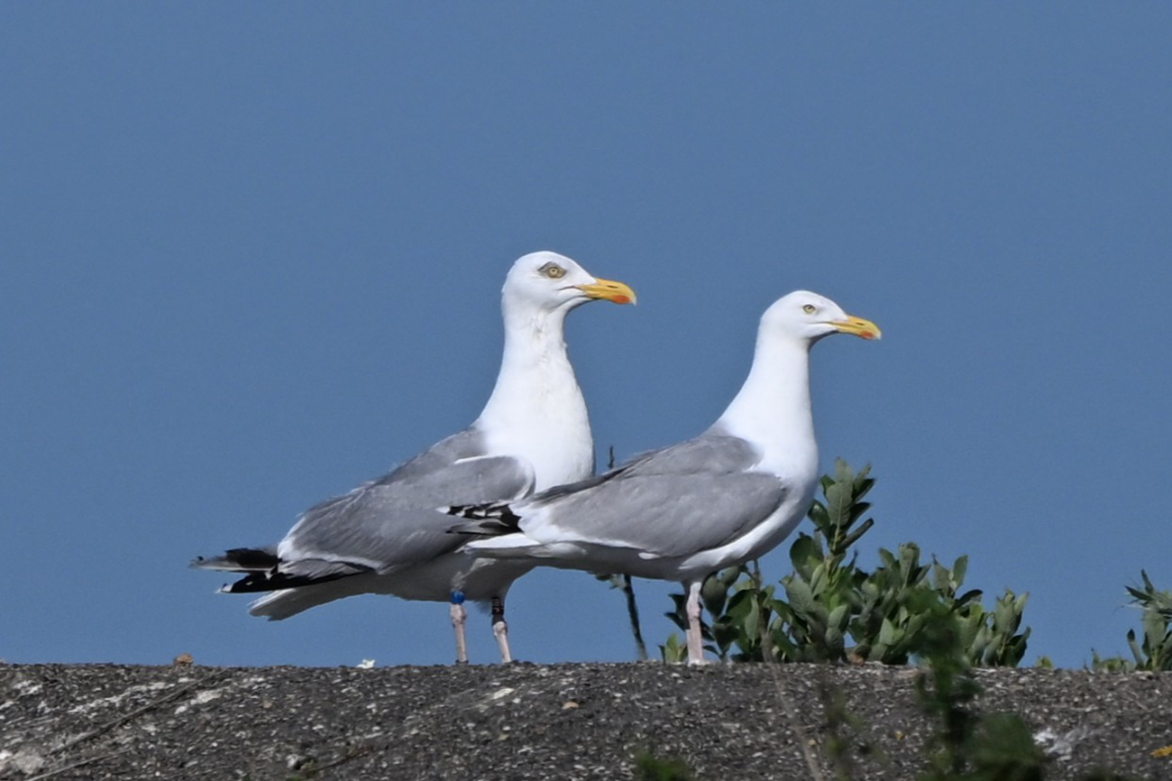 below: Herring Gull argenteus B / JM adult, June 29 2025, colony Lelystad, the Netherlands. Picture: Thijs Horst.