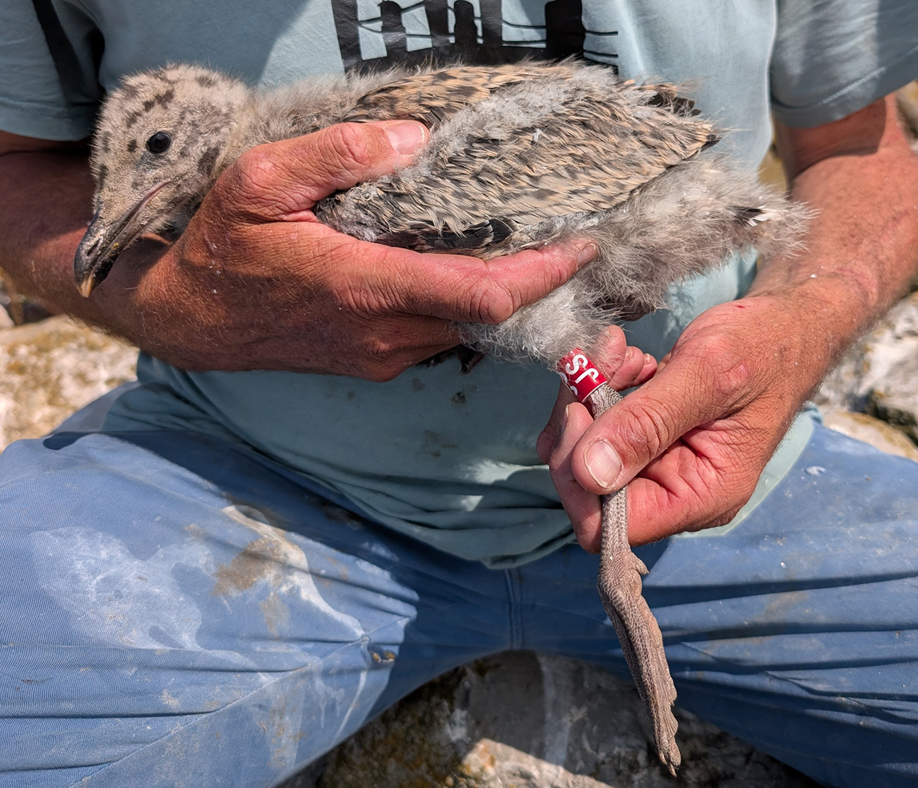 below: Herring Gull argenteus B / JS 1CY, May 31 2025, colony Lelystad, the Netherlands. Picture: Thijs Horst & Mars Muusse.