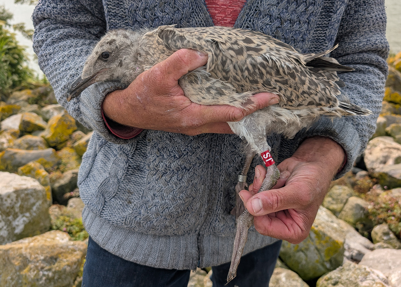 Herring Gull argenteus B / JS 1CY, 2025, colony Lelystad, the Netherlands. Picture: Thijs Horst.