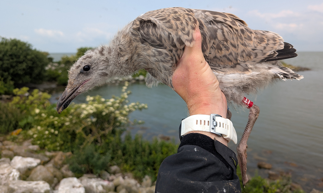 below: Herring Gull argenteus B / JT 1CY, June 29 2025, colony Lelystad, the Netherlands. Picture: Thijs Horst.