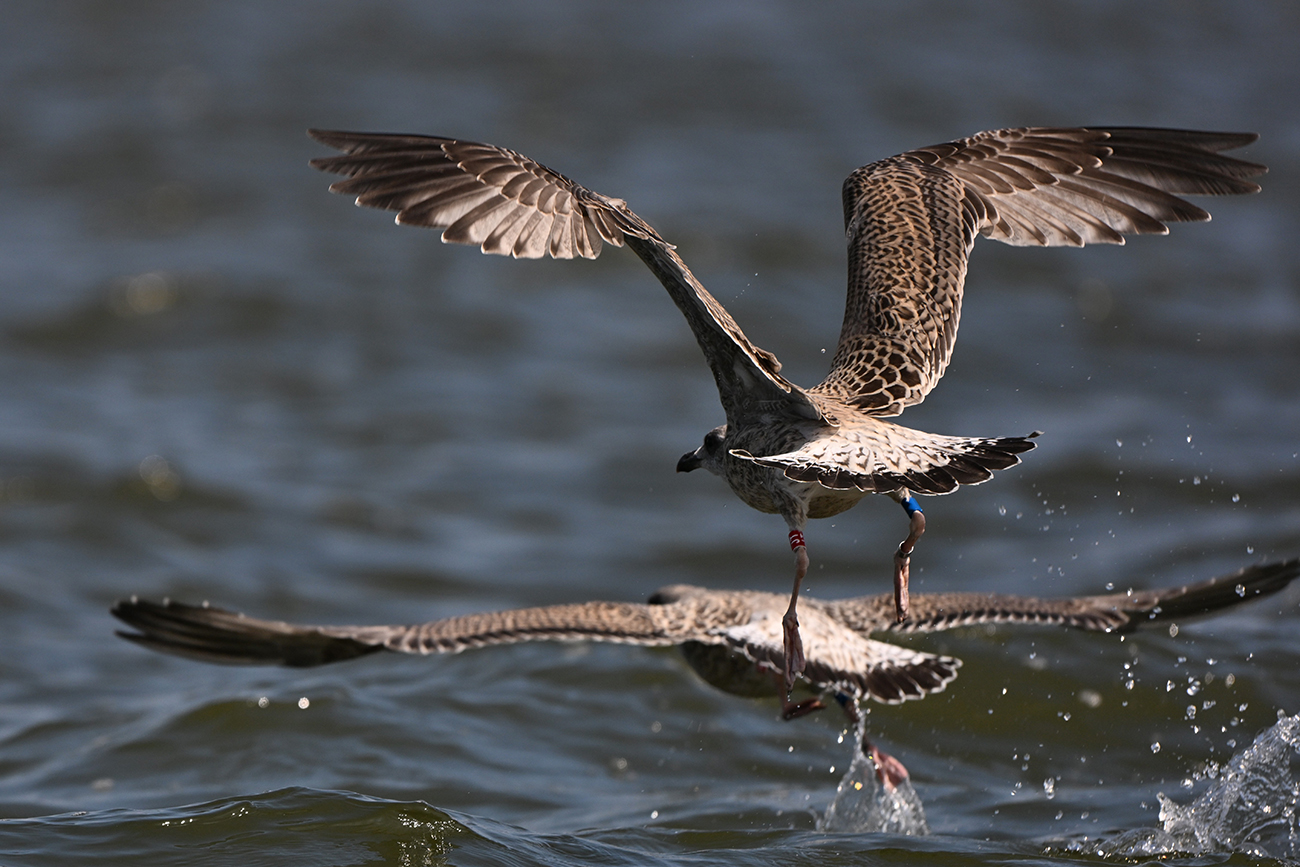 below: Herring Gull argenteus B / JT 1CY, July 09 2025, colony Lelystad, the Netherlands. Picture: Thijs Horst.