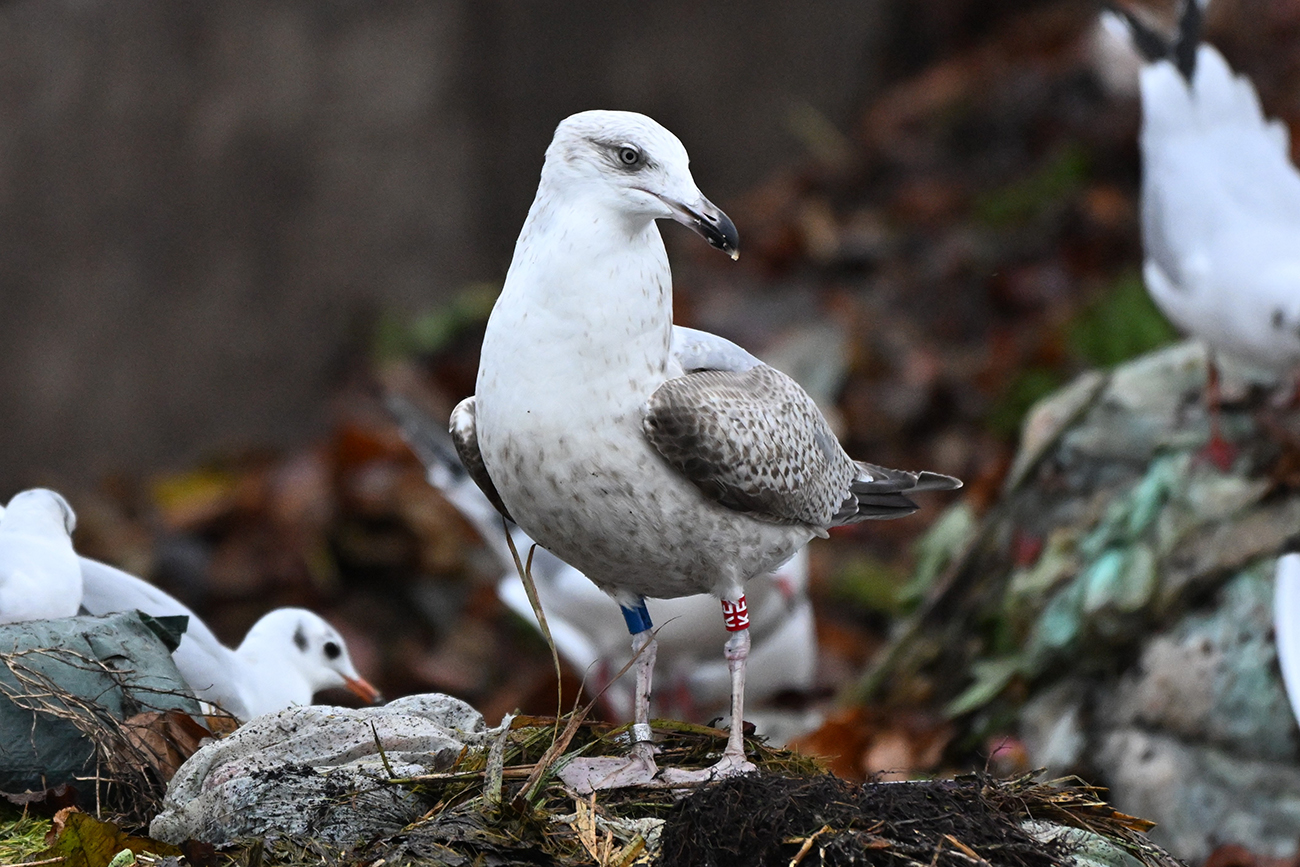 below: Herring Gull argenteus B / KE 2CY, December 02 2025, Almere - De Vaart, the Netherlands. Picture: Thijs Horst.