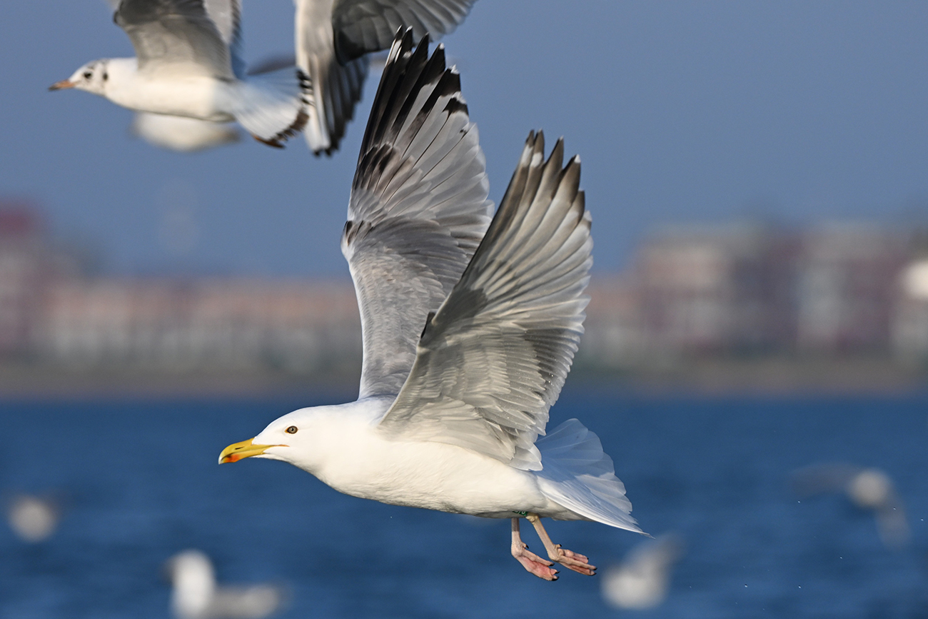 below: Caspian Gull cachinnans x Herring Gull argenteus hybrid 8|R 2CY, December 23 2024, Almere - De Vaart, the Netherlands. Picture: Thijs Horst.
