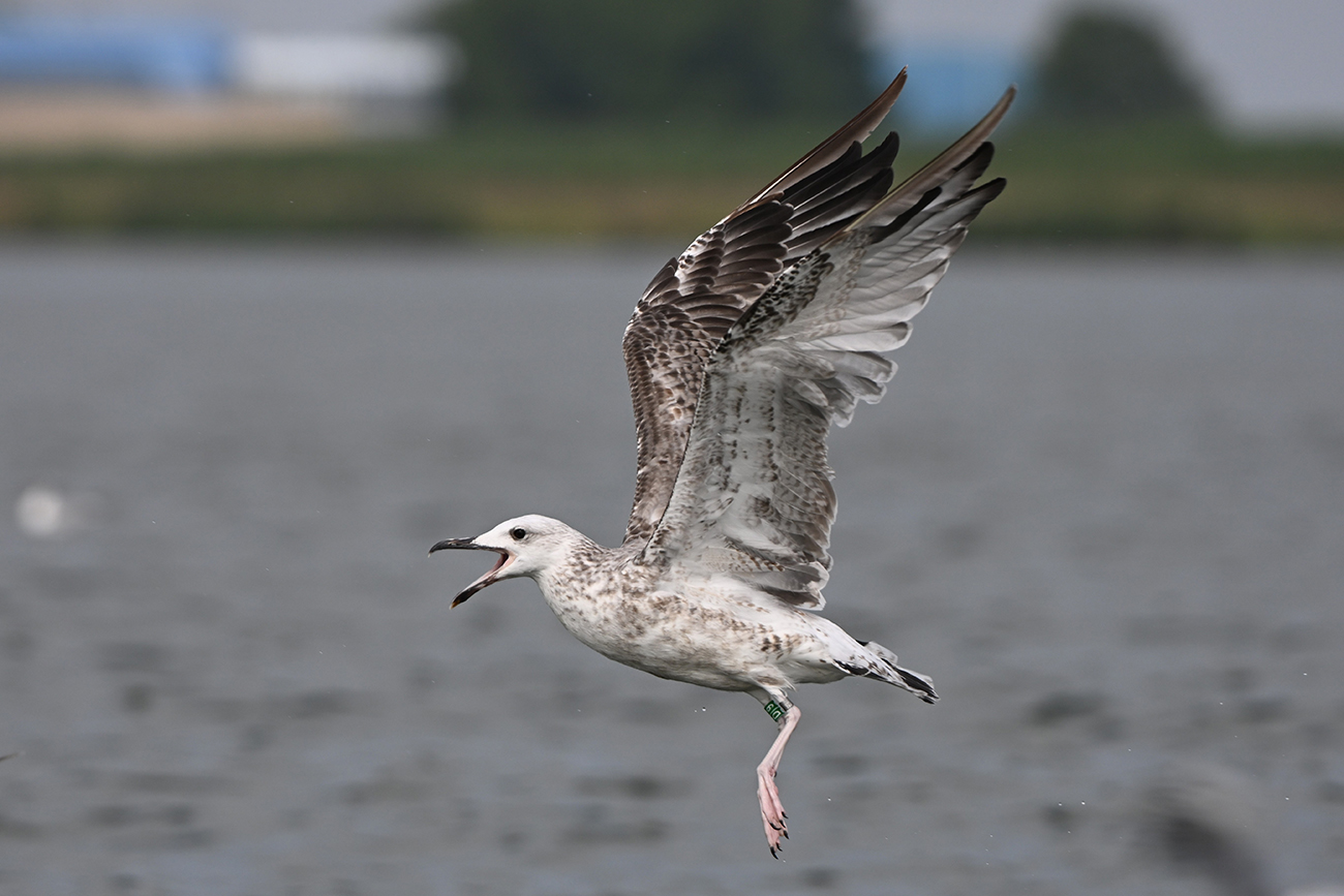 below: Caspian Gull cachinnans D|9 1CY, July 30 2024, colony De Kreupel, the Netherlands. Picture: Thijs Horst.