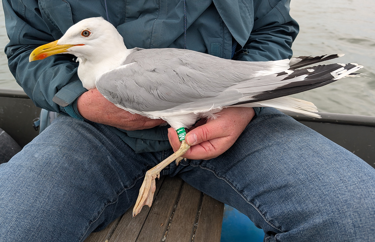 new female cachinnans, not g-A|D. Trapped this year, now g-M|1. Male is same as 2024, unringed.