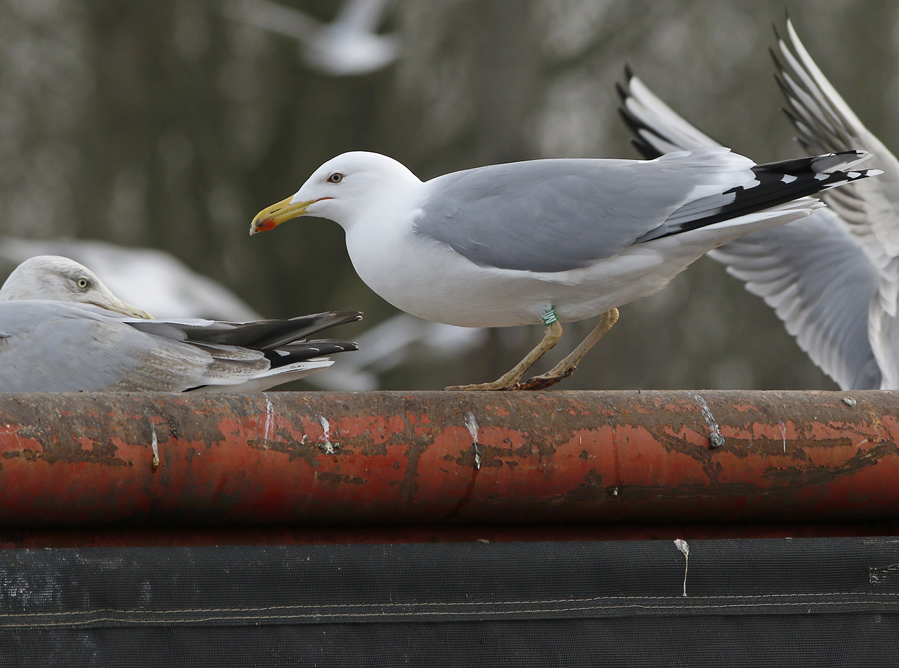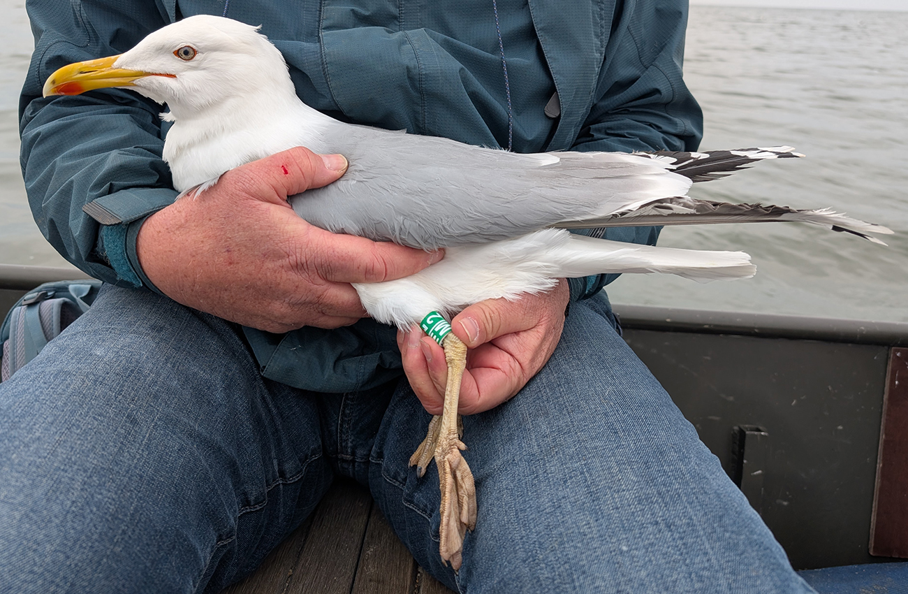 Tibia G-M|2 and metal NLA 5.641.003, ringed as breeding adult Larus cachinnans on April 23 2025 at Lelystad, the Netherlands. Ringed by Roland-Jan Buijs ringing team (Mars Muusse / Thijs Horst / Fred Cottaar).