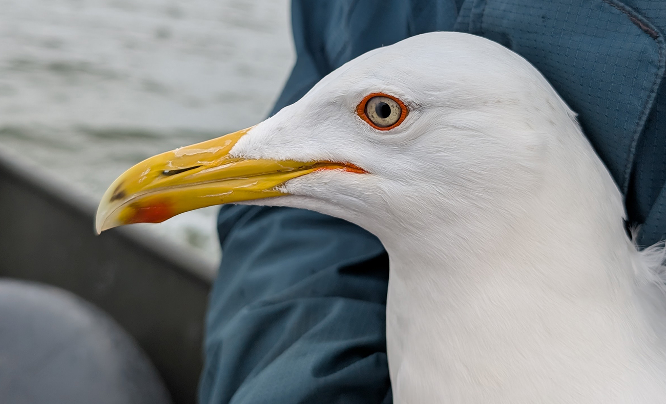 below: Caspian Gull cachinnans M|3 adult, June 30 2025, colony Lelystad, the Netherlands. Picture: Thijs Horst.