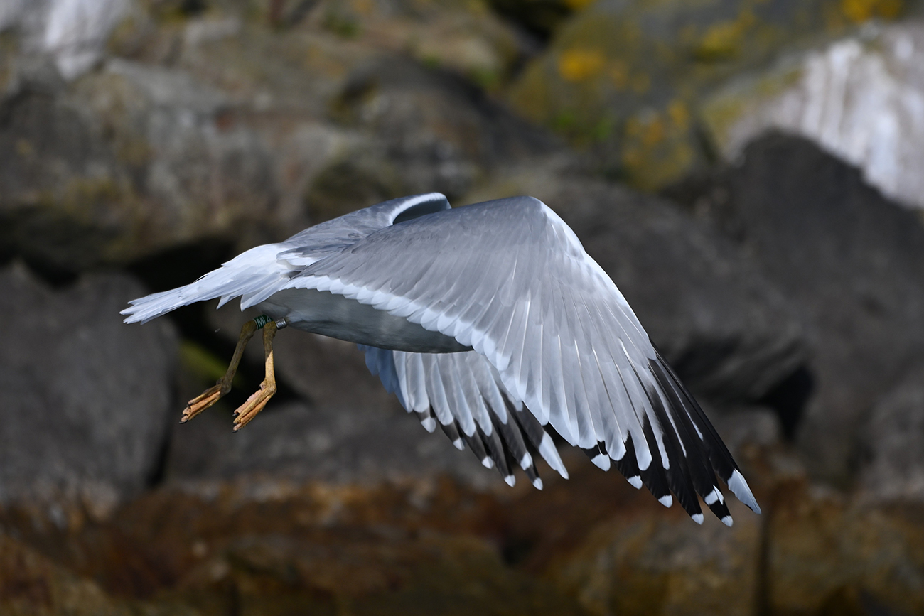 Tibia G-M|4 and metal NLA 5.641.005, ringed as breeding adult Larus cachinnans on April 25 2025 at Lelystad, the Netherlands. Ringed by Roland-Jan Buijs ringing team (Mars Muusse / Thijs Horst / Fred Cottaar).