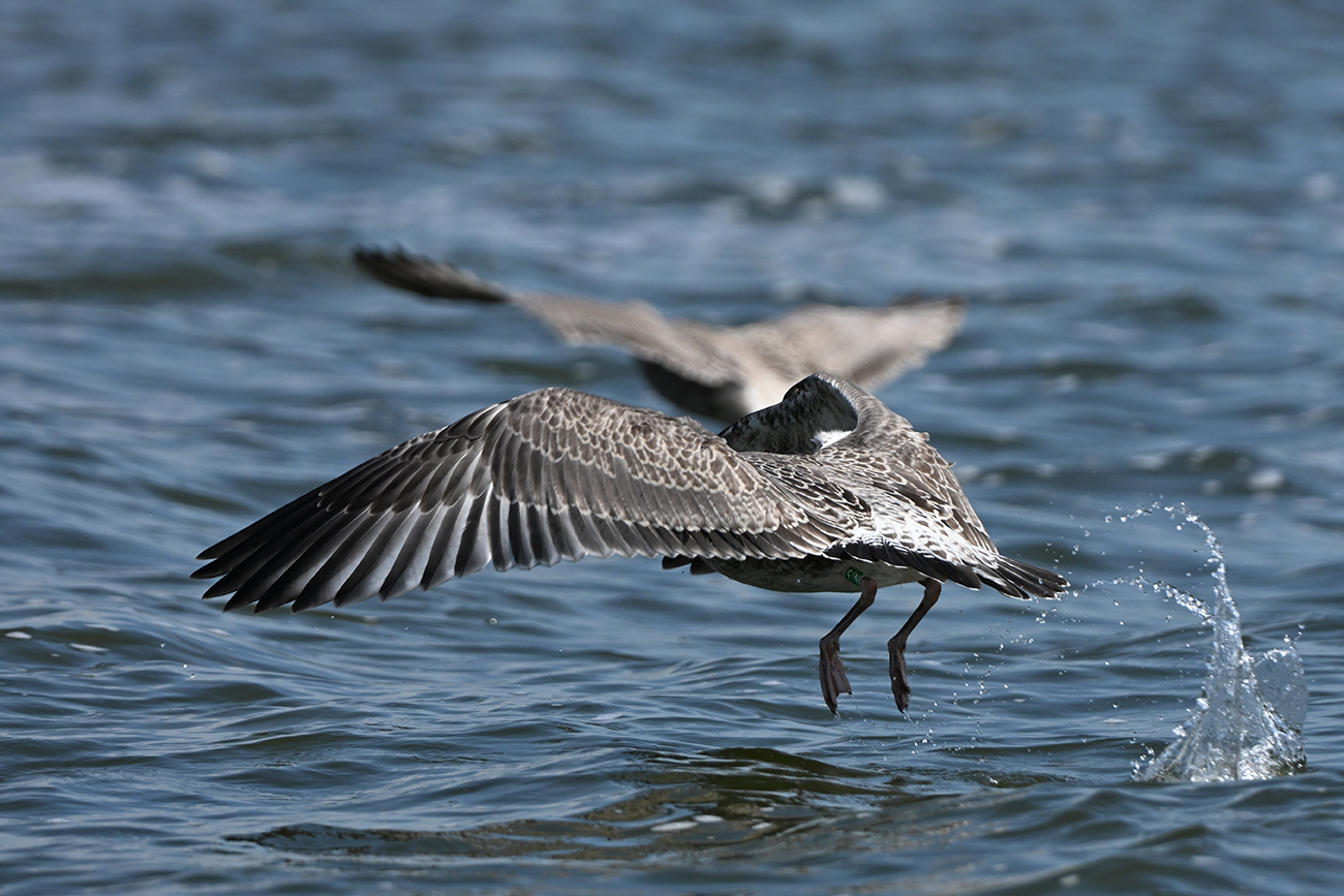 below: Caspian Gull cachinnans N|5 1CY, July 09 2025, colony Lelystad, the Netherlands. Picture: Thijs Horst.