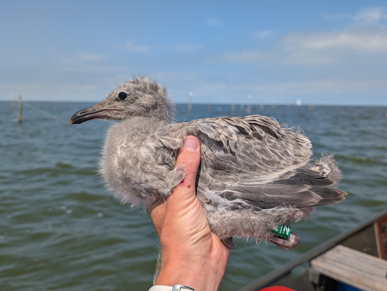 below: Caspian Gull cachinnans N|7 1CY, June 09 2025, colony Lelystad, the Netherlands. Picture: Thijs Horst.