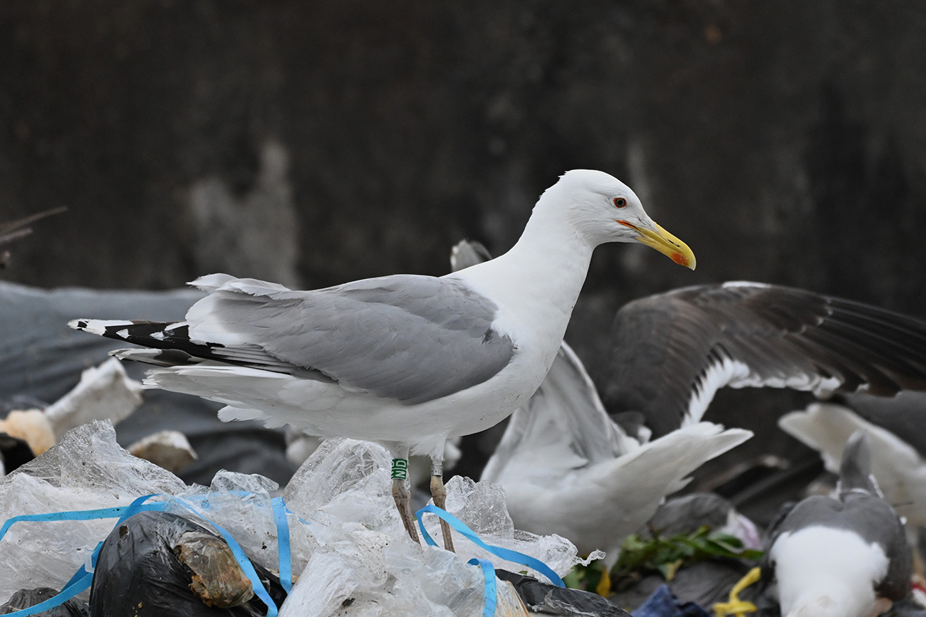 Tibia G-N|D and metal NLA 5.641.013, ringed as breeding adult Larus cachinnans on April 28 2025 at Lelystad, the Netherlands. Ringed by Roland-Jan Buijs ringing team (Mars Muusse / Thijs Horst / Fred Cottaar).