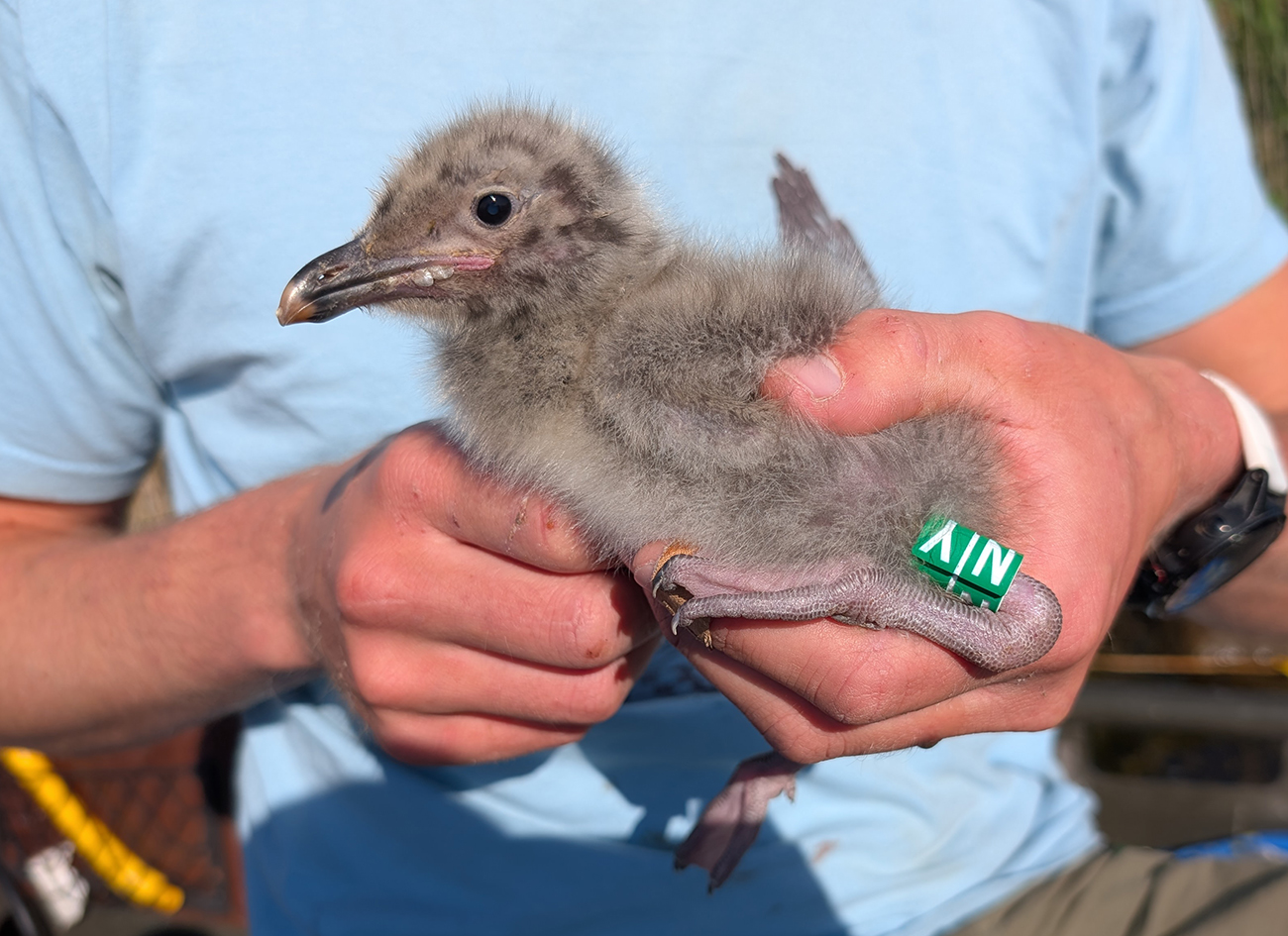 below: Caspian Gull cachinnans N|Y 1CY, June 09 2025, colony Lelystad, the Netherlands. Picture: Thijs Horst.