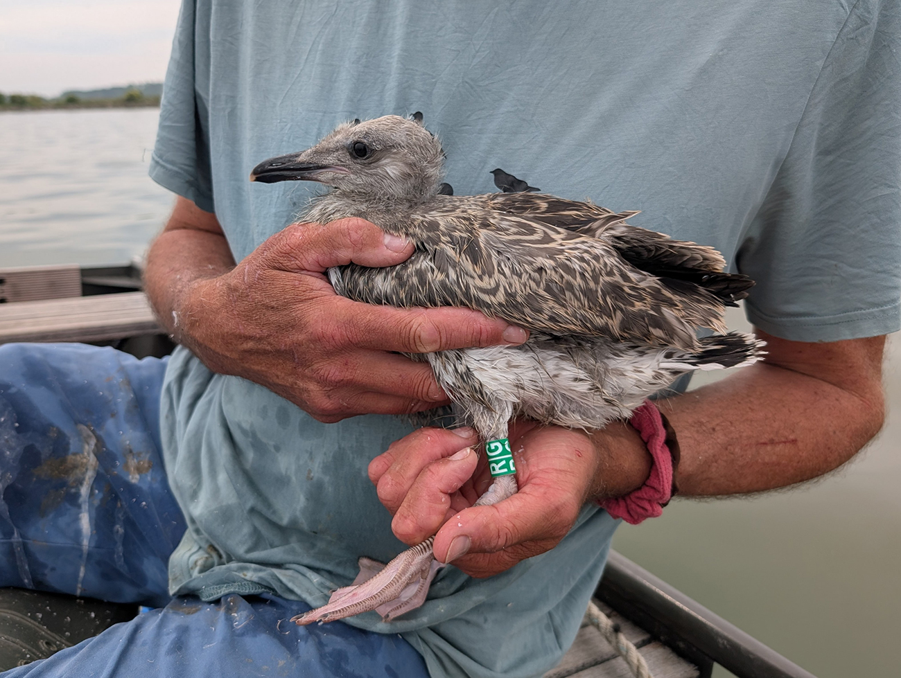 below: Caspian Gull cachinnans R|G 1CY, July 09 2025, colony Lelystad, the Netherlands. Picture: Thijs Horst.