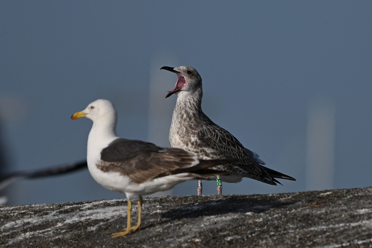 below: Caspian Gull cachinnans R|L 1CY, May 31 2025, colony Lelystad, the Netherlands. Picture: Thijs Horst.