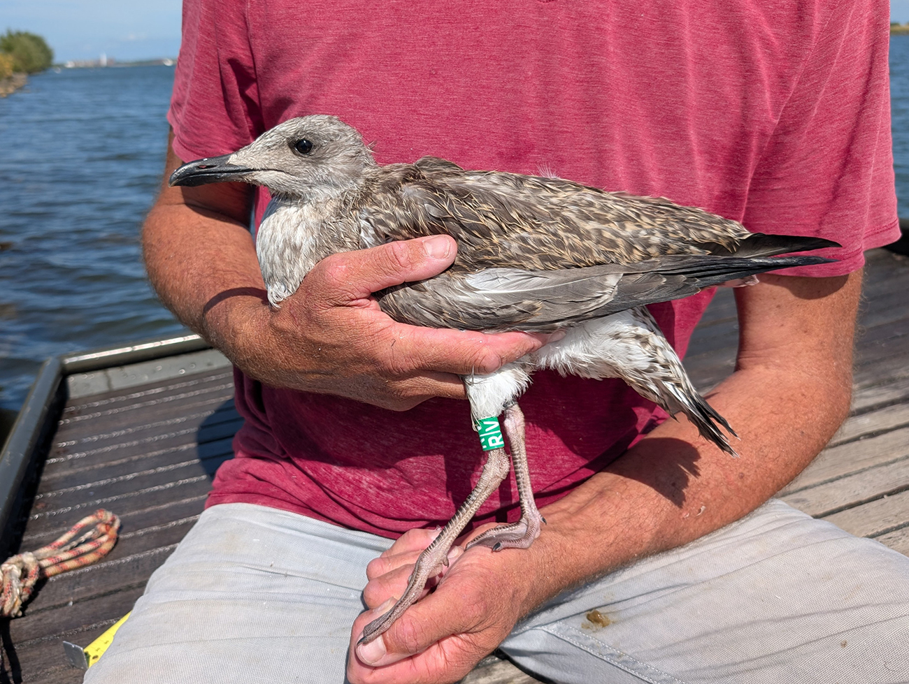 Caspian Gull cachinnans hybrid R|V 1CY, 2025, colony Lelystad, the Netherlands. Picture: Thijs Horst.