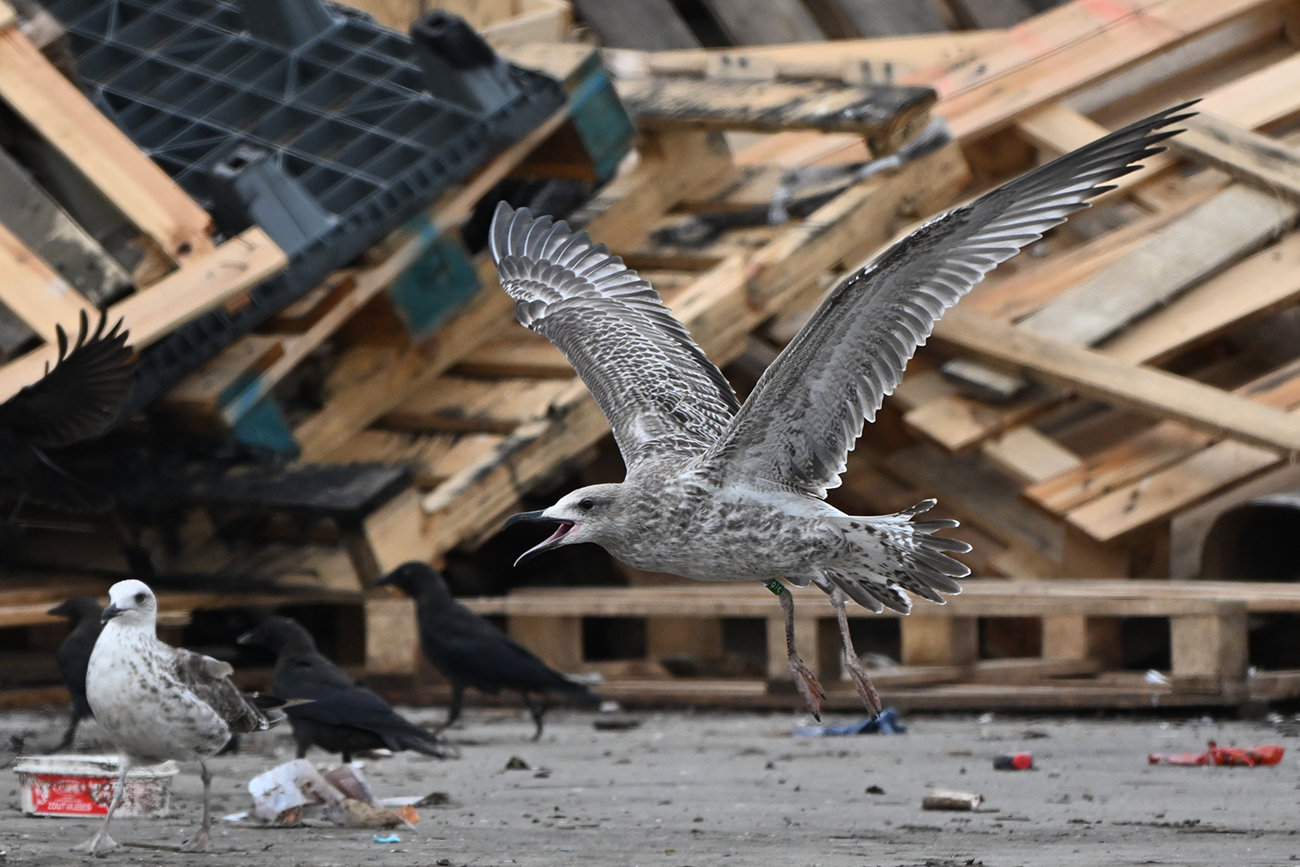 below: Caspian Gull cachinnans S|6 1CY, August 04 2025, Almere - De Vaart, the Netherlands. Picture: Thijs Horst.