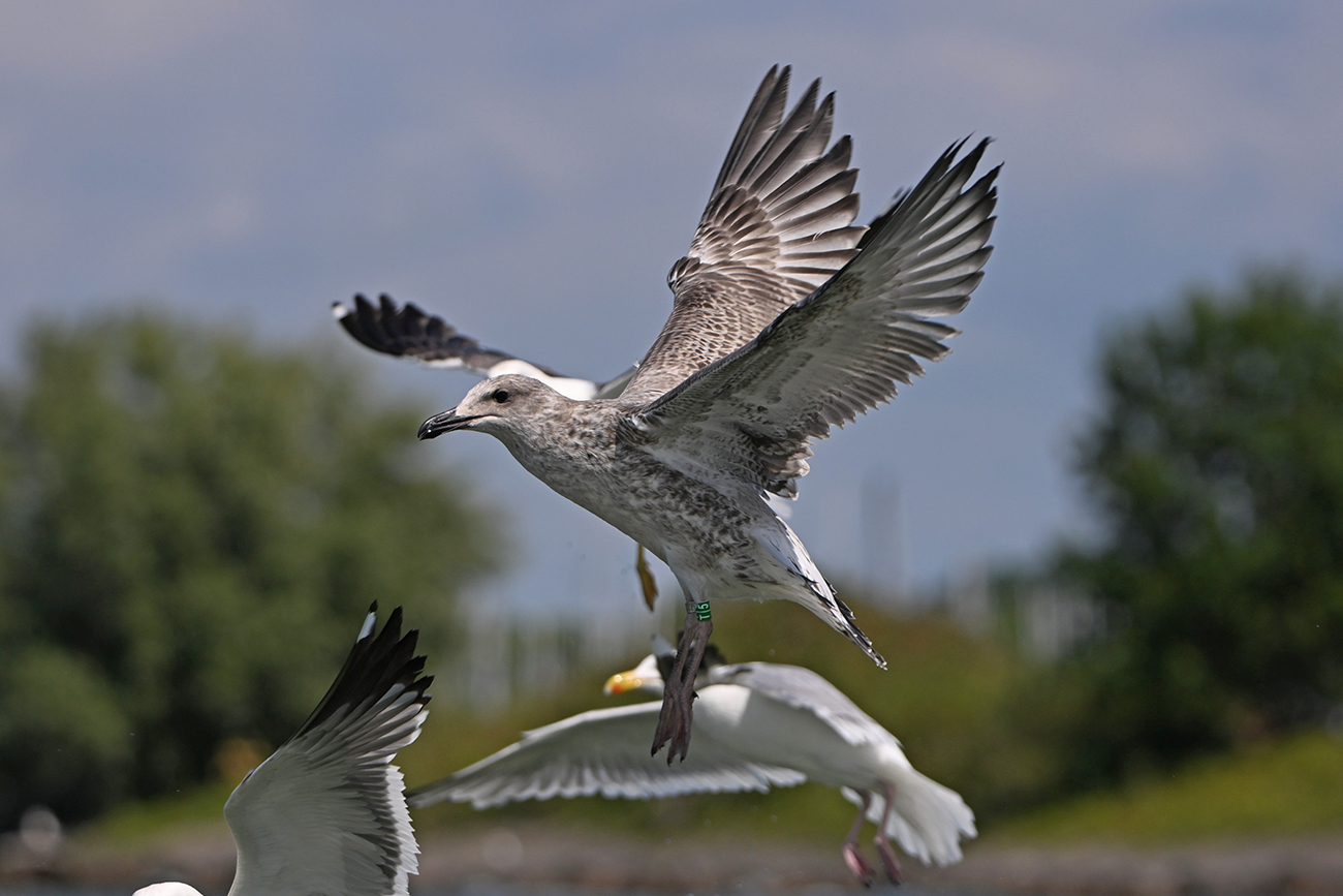 below: Caspian Gull cachinnans T|5 1CY, July 09 2025, colony Lelystad, the Netherlands. Picture: Thijs Horst.