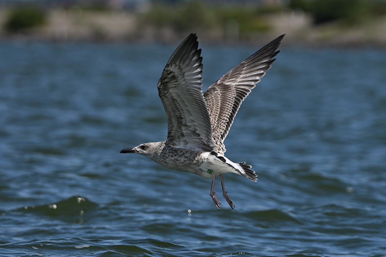 below: Caspian Gull cachinnans T|6 1CY, July 09 2025, colony Lelystad, the Netherlands. Picture: Thijs Horst.
