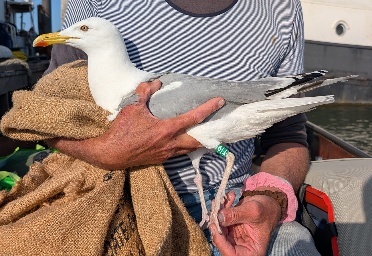 same as 2023-2024. Caspian Gulls, male is g-A|H and female trapped this year, now g-T|9.