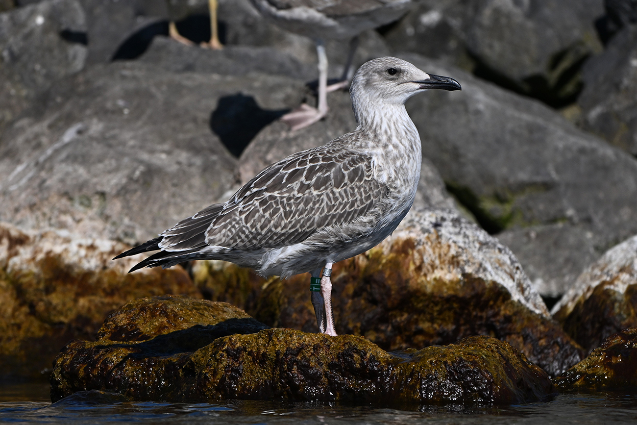 below: Caspian Gull cachinnans T|= 1CY, July 11 2025, Marker Wadden, the Netherlands. Picture: Thijs Horst.