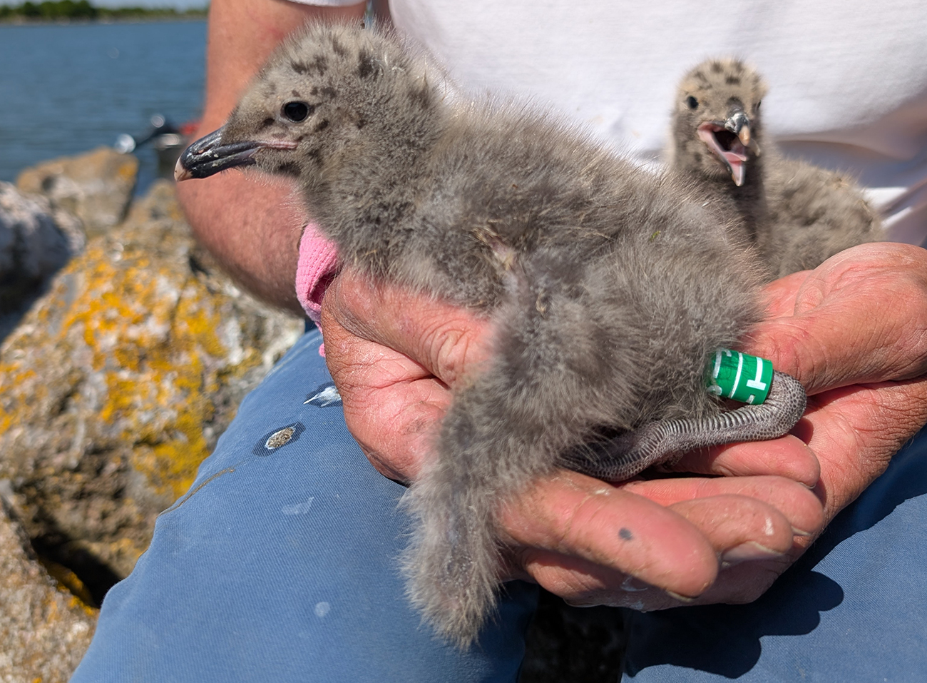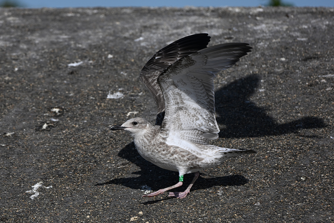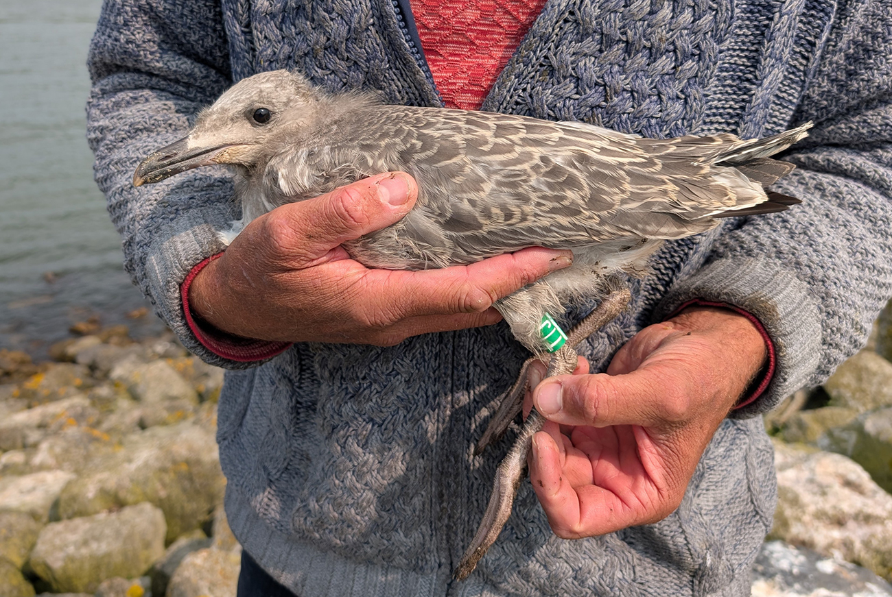 Caspian Gull cachinnans T|J 1CY, 2025, colony Lelystad, the Netherlands. Picture: Thijs Horst.