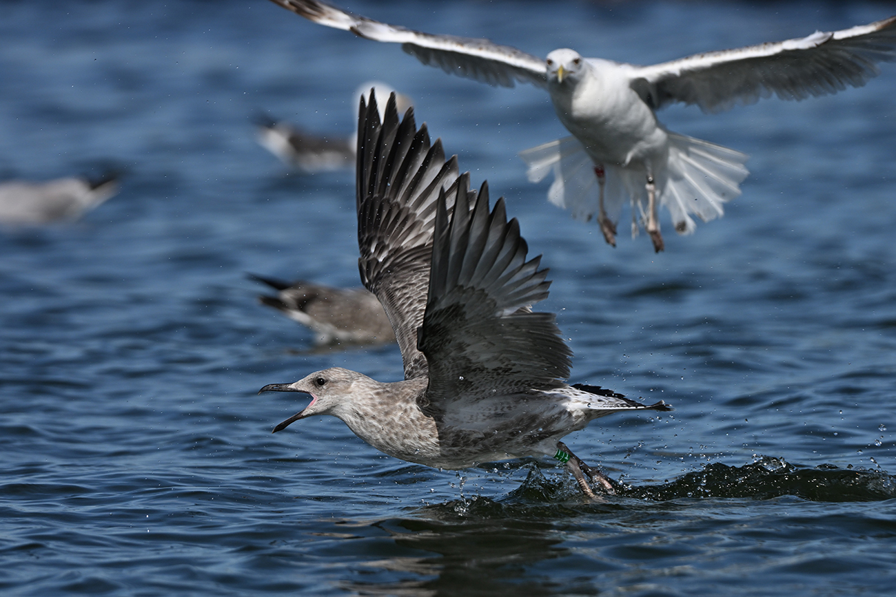 below: Caspian Gull cachinnans T|J 1CY, July 09 2025, colony Lelystad, the Netherlands. Picture: Thijs Horst.
