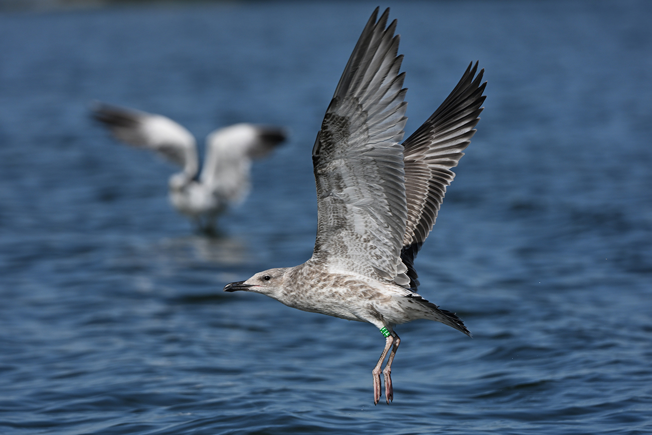 below: Caspian Gull cachinnans T|J 1CY, June 25 2025, colony Lelystad, the Netherlands. Picture: Thijs Horst.