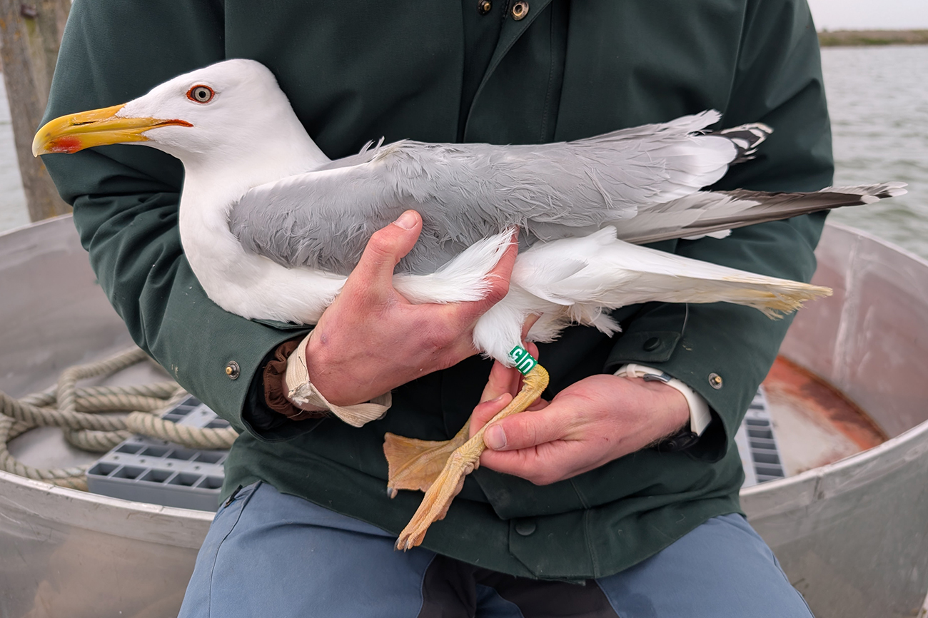 below: Caspian Gull cachinnans U|5 adult, April 13 2026, colony Lelystad, the Netherlands. Picture: Thijs Horst & Mars Muusse.