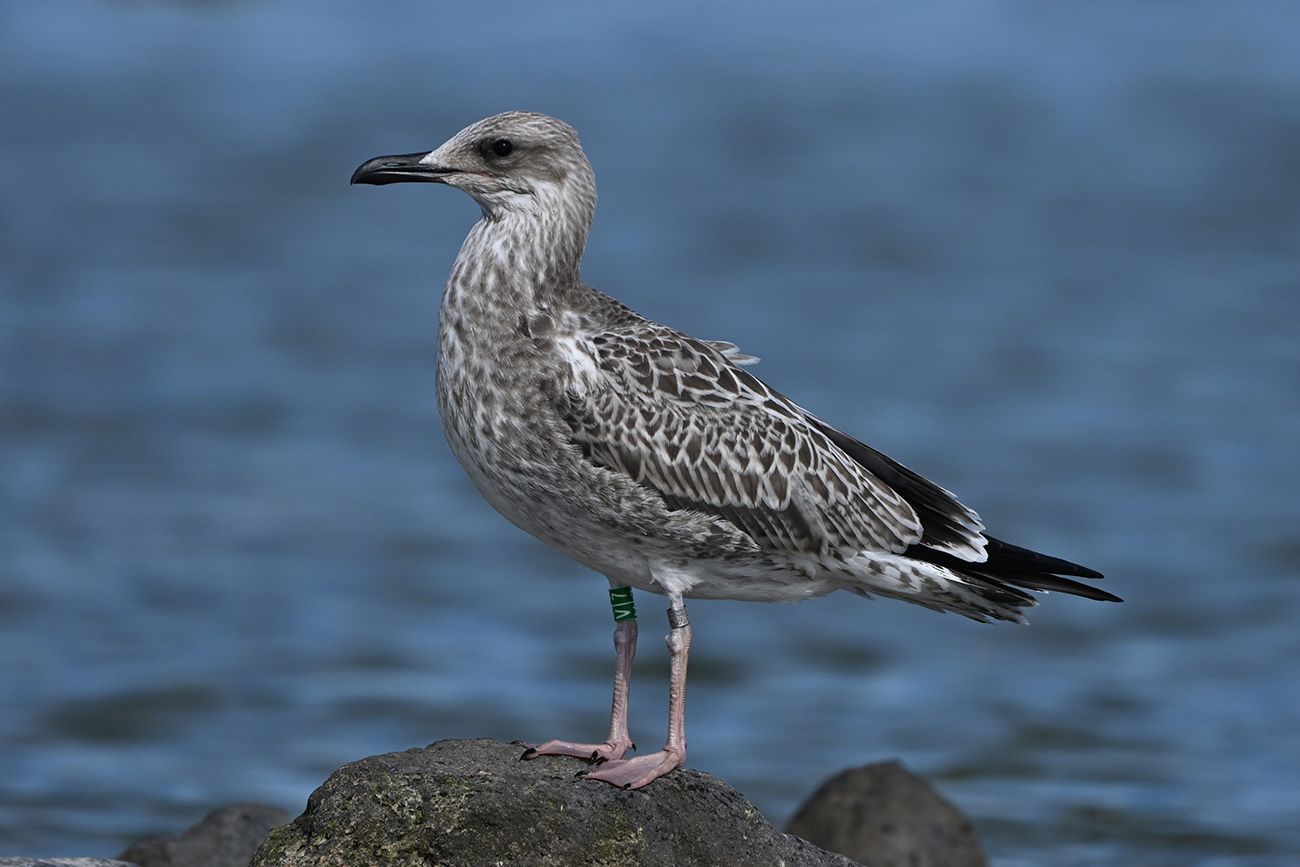 Tibia G-V|7 and metal Arnhem NLA 5.639.097, ringed as pullus Larus cachinnans on May 09 2025 at IJsselmeer (De Kreupel), Holland (5247.00 N 513.00 E), by ringer Leon Kelder.