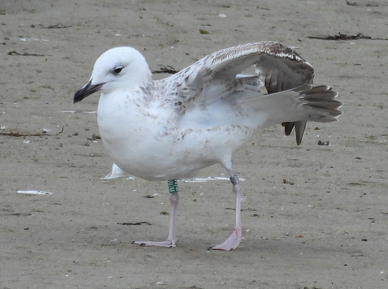 below: Caspian Gull cachinnans W|M 1CY, December 24 2025, San Cibrao - A Coruña, Spain. Picture: Lucas Rouco.