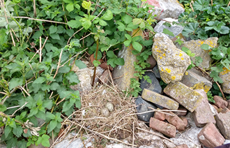 | nest | April 29th, 2022: location of nest. | April 29th, 2022: full clutch, 3 eggs. | April 21st, 2024: 2 eggs. |