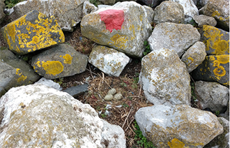 | location: | location is PU60-2022. Red spot on block near nest. | |