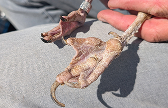 | 4/28/2025 | adult | breeding adult trapped on nest, now b/r-JD.